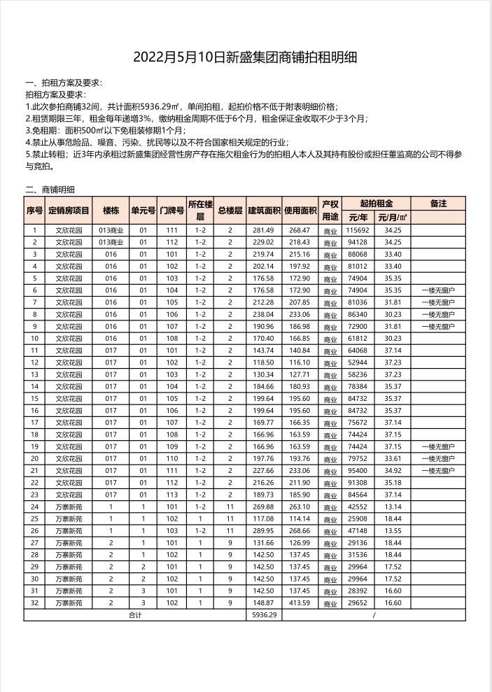 1、文欣花園23間,建筑面積分別為130.34至281.49㎡不等,租期3年。(保證金1萬(wàn)元/間)