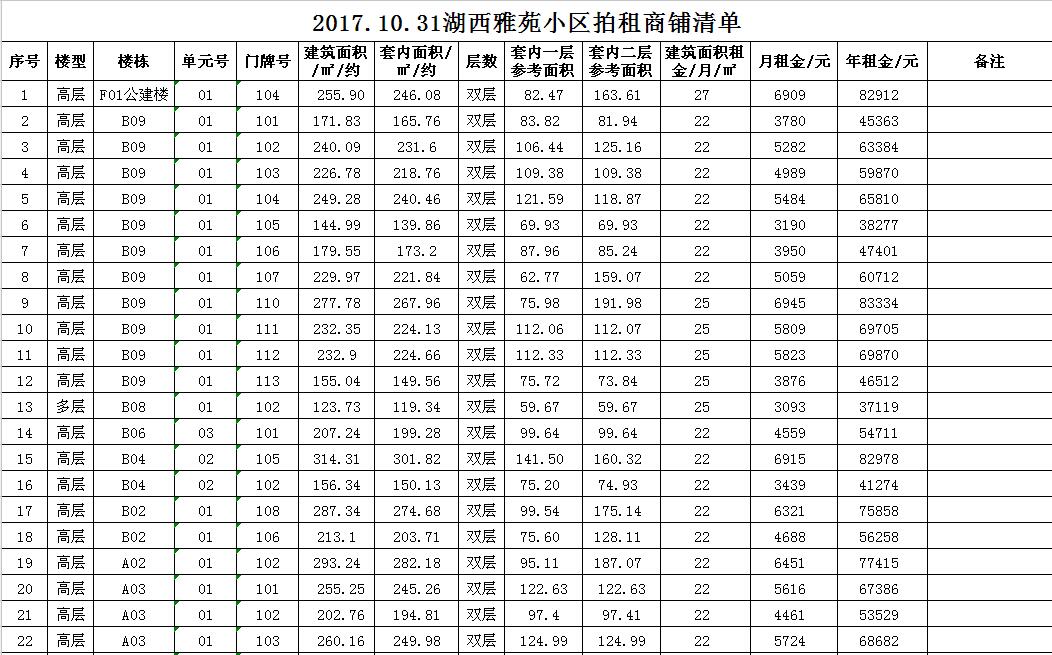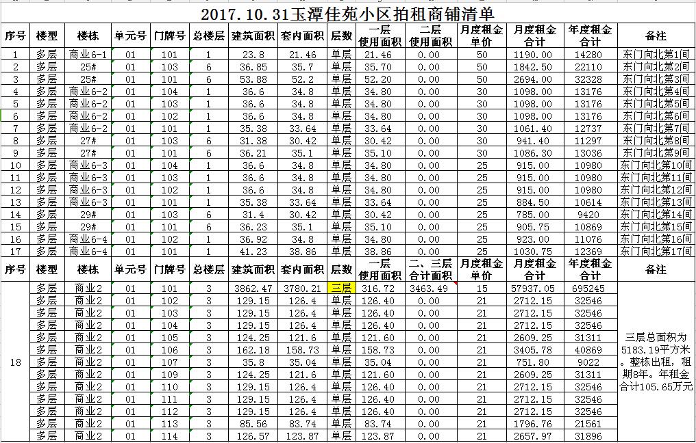 我公司受委托,定于2017年10月31日10時(shí)在本公司拍賣(mài)廳對(duì)以下小區(qū)門(mén)面房進(jìn)行公開(kāi)拍租: