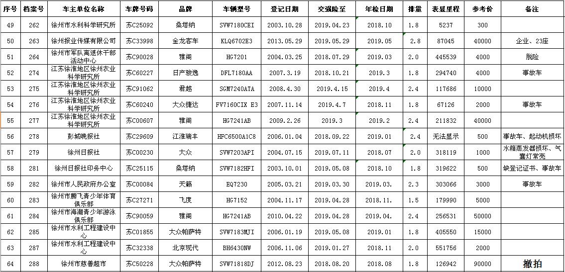 關(guān)注微信公眾號受委托,五家拍賣公司聯(lián)合舉行“徐州市企事業(yè)單位改革公務(wù)車輛聯(lián)合拍賣會”。拍賣時間:2018年7月27日上午9:30。