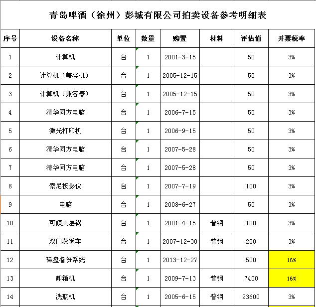 關(guān)注微信公眾號受委托,我公司定于2018年 9月28日10:00通過中國拍賣行業(yè)協(xié)會網(wǎng)絡(luò)拍賣平臺以網(wǎng)絡(luò)競價的方式公開拍賣:青島啤酒(徐州)彭城有限公司廢舊設(shè)備一批,主要包括:洗瓶機、灌酒壓蓋機、殺菌機、包裝機、輸瓶輸箱系統(tǒng)、辦公設(shè)備等。