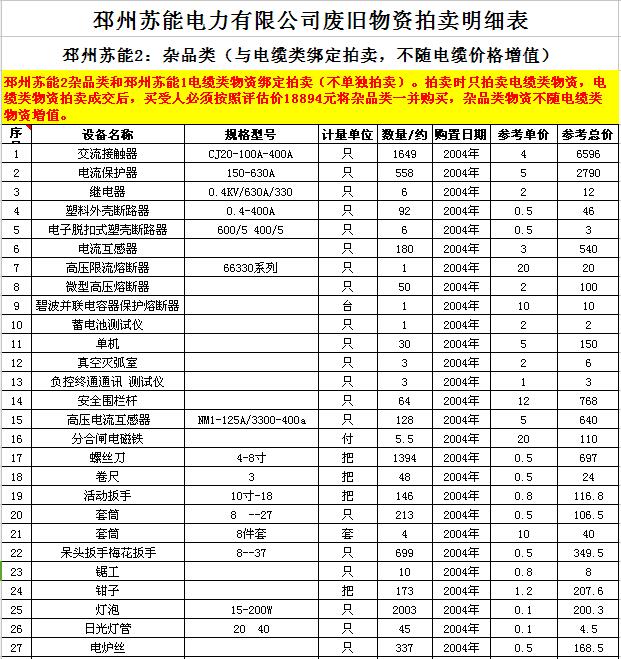 關(guān)注微信公眾號(hào)受委托,我公司將通過中國(guó)拍賣行業(yè)協(xié)會(huì)網(wǎng)絡(luò)拍賣平臺(tái)以網(wǎng)絡(luò)競(jìng)價(jià)的方式公開拍賣廢舊電力物資一批,主要包括:電纜、導(dǎo)線、廢舊鋼材、鋼芯鋁絞線、金具、雜品、機(jī)具、空調(diào)、辦公設(shè)備等。