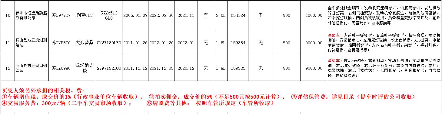 7月26日、27日在徐州銀地二手車交易市場展示。有意競買者請持有效證件到我公司辦理報名手續(xù),并交納每輛車1萬元保證金即可參拍,報名截止至7月27日16時。