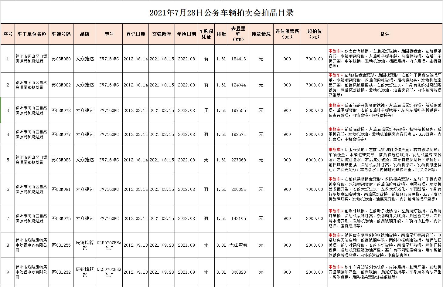 關注微信公眾號受委托,我公司定于2021年7月28日10時在中拍平臺通過網絡競拍方式公開拍賣以下公務車輛: