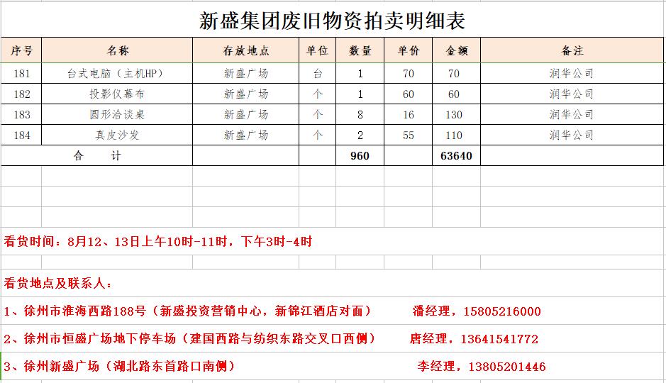 2、新盛集團(tuán)廢舊電腦、空調(diào)、復(fù)印機(jī)、廚浴設(shè)備、健身器材、辦公家具等物資。(保證金2萬元)